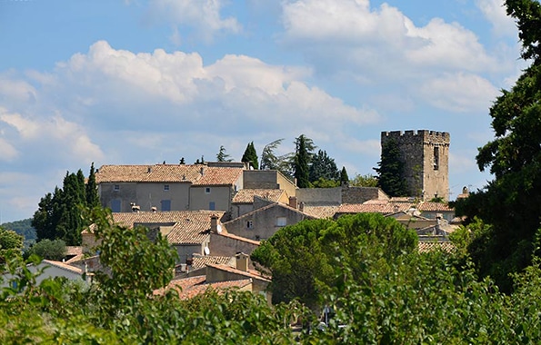 Le village est situé sur les bords de l’Aygues. Ces collines typiques du paysage local accueillent le vignoble.